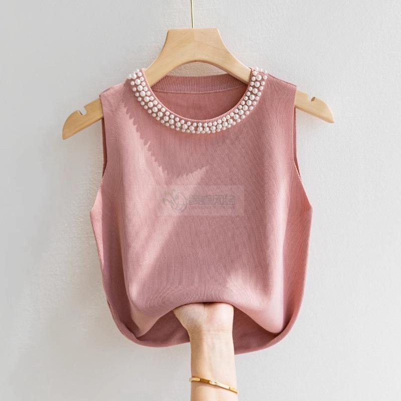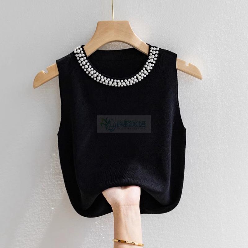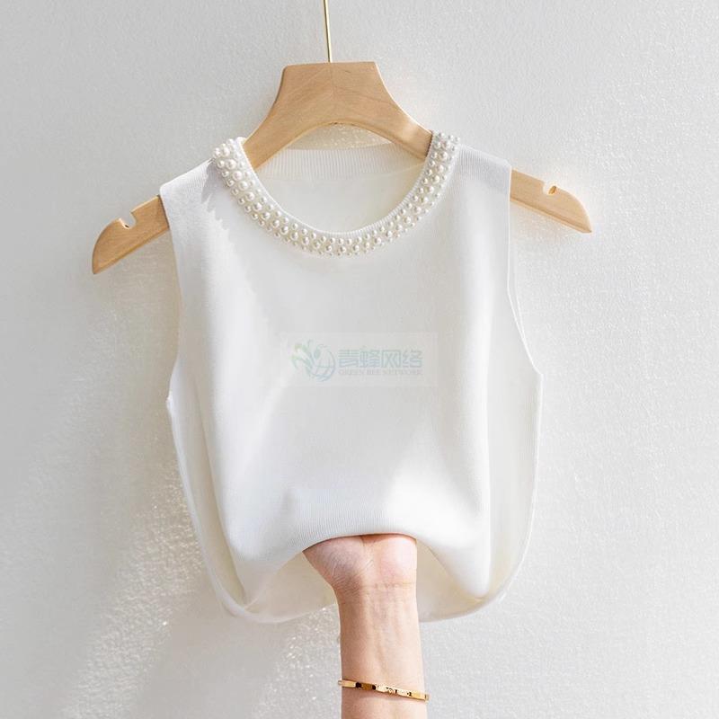吊带背心女白色无袖打底衫春秋款内搭配西装钉珠小香风针织衫上衣