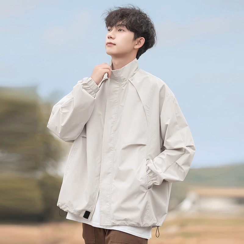 男生米色防风外套男春季男装潮牌2025新款美式立领夹克上衣百...