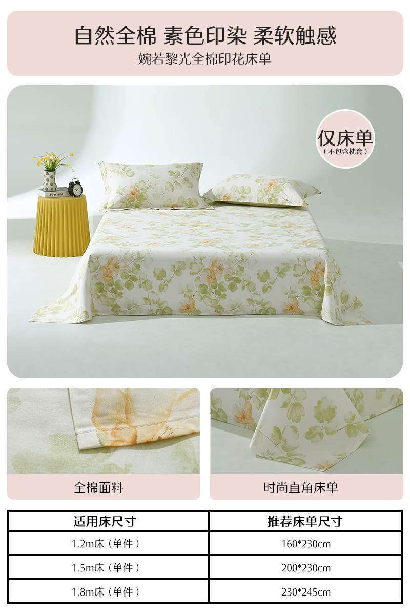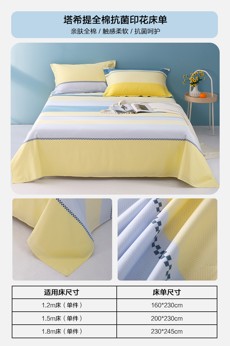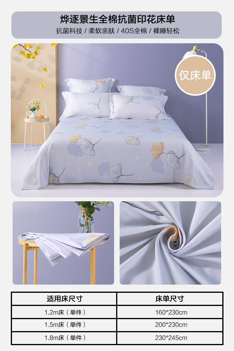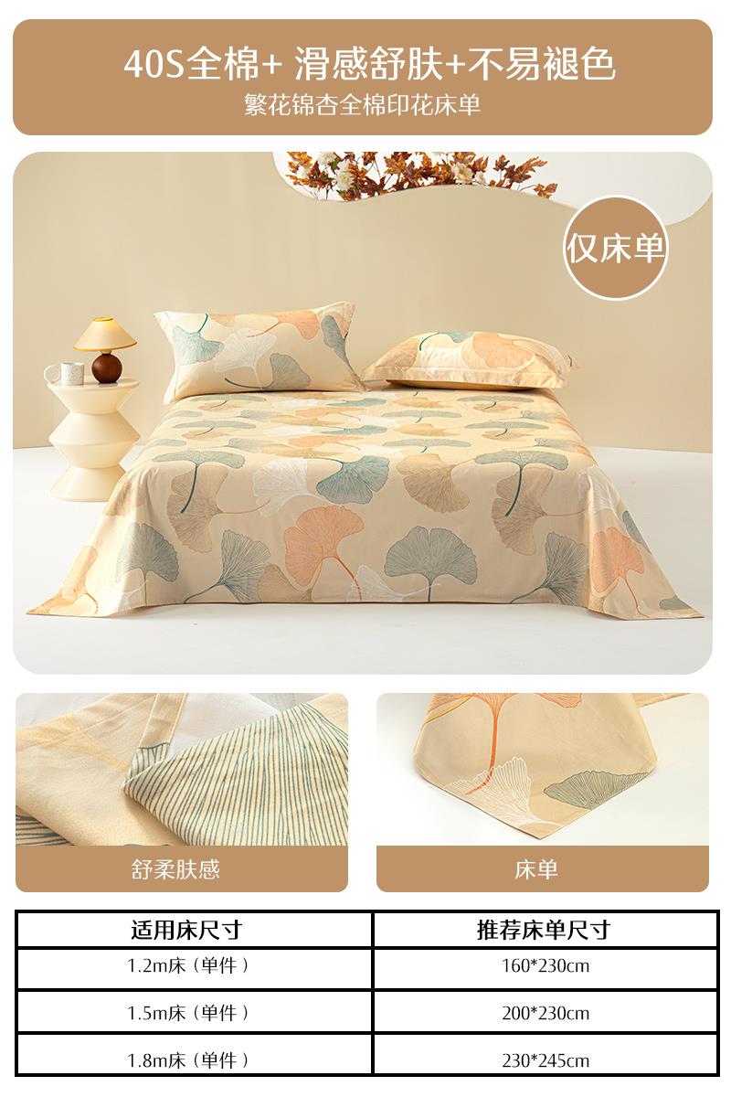 水星家纺纯棉床单单件单人学生宿舍100全棉加厚双人床被单床品