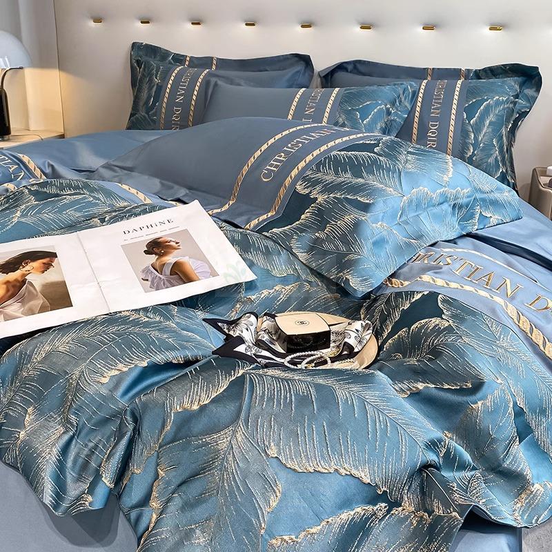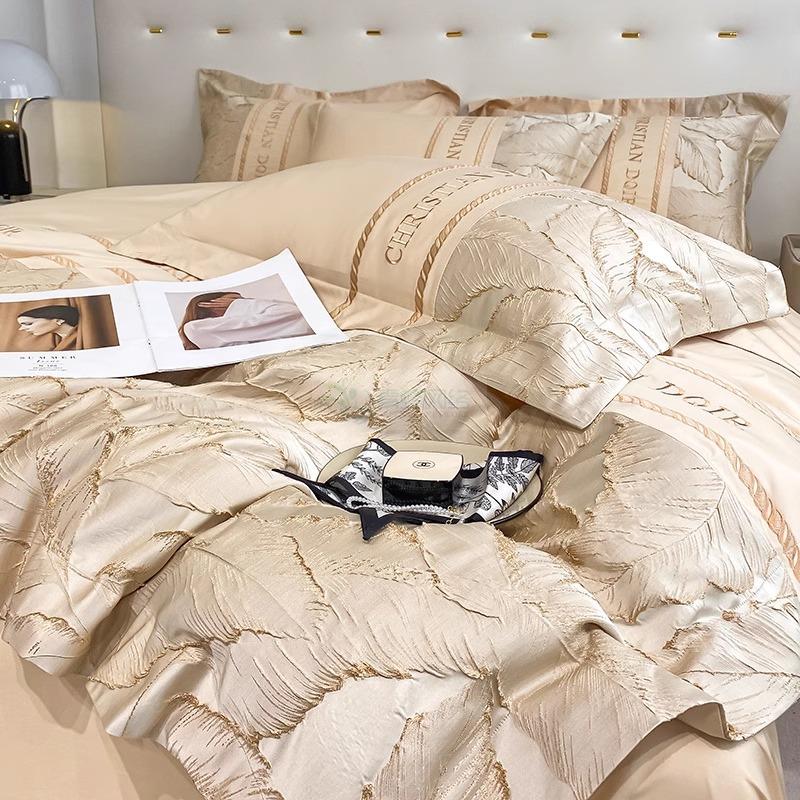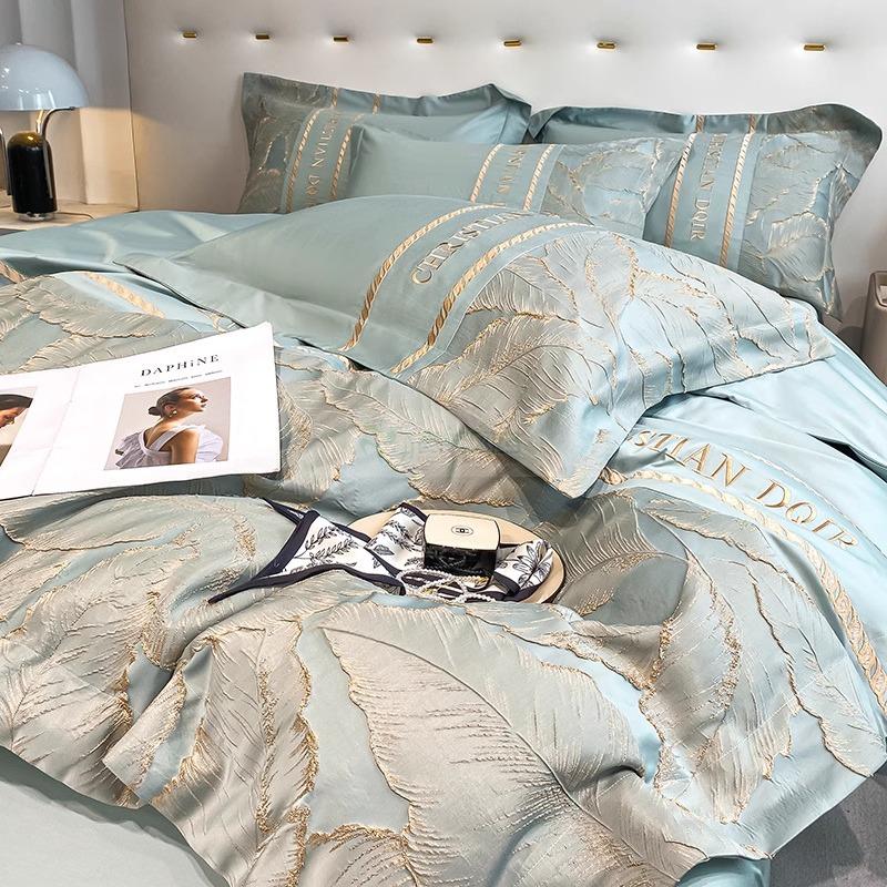 高端轻奢160支纯棉四件套全棉被套床单床笠欧式浮雕刺绣床上用...