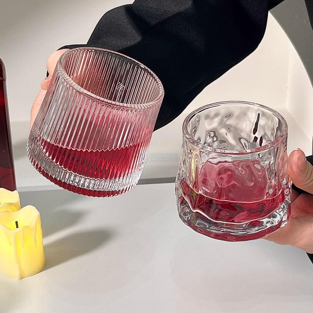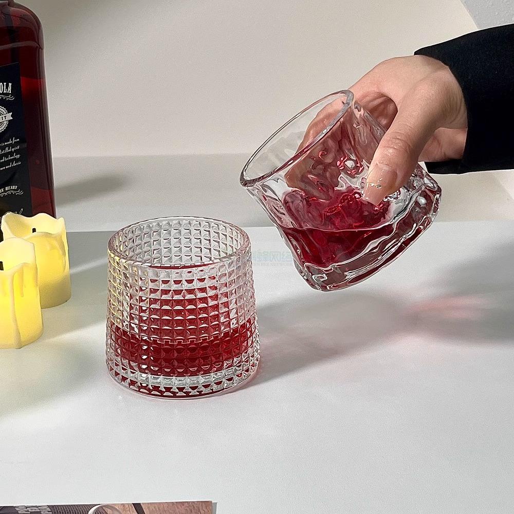 复古ins风平底杯梯形玻璃杯创意感威士忌酒杯咖啡杯冷萃杯水杯子